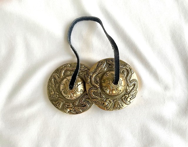 ■【浄化用品】ティンシャ~音の力で空間浄化(ドラゴン柄) チベットシンバルは音で空間を浄化する楽器兼浄化用の道具となります。 空間から不浄なものを音で払いのける、強力な浄化力を持ちます。 音を鳴らすだけですので、簡単に浄化をしたい方お勧め。 占いなどをする方は是非一つお持ちください。 音を聞くだけで、心が澄み渡りますよ~ ■ドラゴン柄について チベット語では龍のことを”ドゥク”とよび、仏教の守護神であると同時に、雷の化身でもあります。 チベット仏教には”ドゥク派”という宗派があるほど、神聖な動物としてあがめられています。 ■内容 ・ティンシャ(チベットシンバル)【ドラゴン柄】 ・生産国:チベット ・材質:真鍮 ・直径6.5cm×高さ2.3cm(個体差はあります) ・革ひも長さ:約25cm ※チベットで手作り生産している商品です。若干のゆがみや小さな傷、革ひもの劣化などはある商品だという前提でご購入ください <使い方> ①左右の手で革ヒモ部分をもって、シンバルをぶら下げます ②シンバルの端と端を1~2回重ね合わせ、音を鳴らします ③その後次のように声に出して浄化されたことを宣言します 『この場所は浄化されました』 ④違う場所、部屋の場合は、それぞれ個別に浄化してください