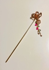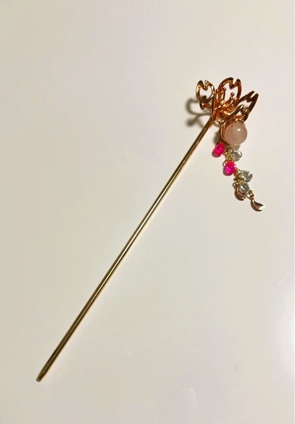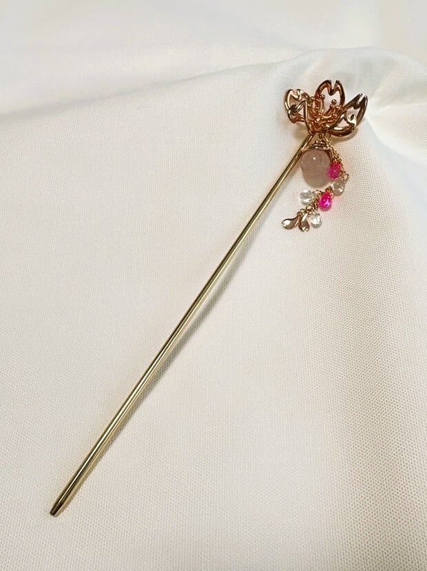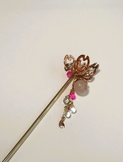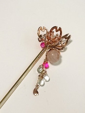 ■素材:金属(真鍮)、天然石(ローズクォーツ)、人工ビーズ