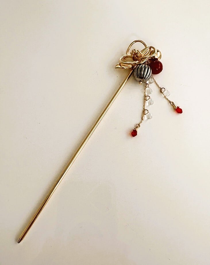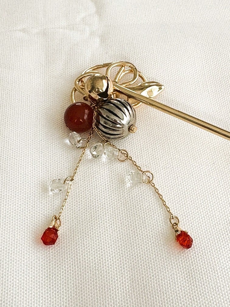 ■素材:金属(真鍮)、天然石(カーネリアン)、人工ビーズ