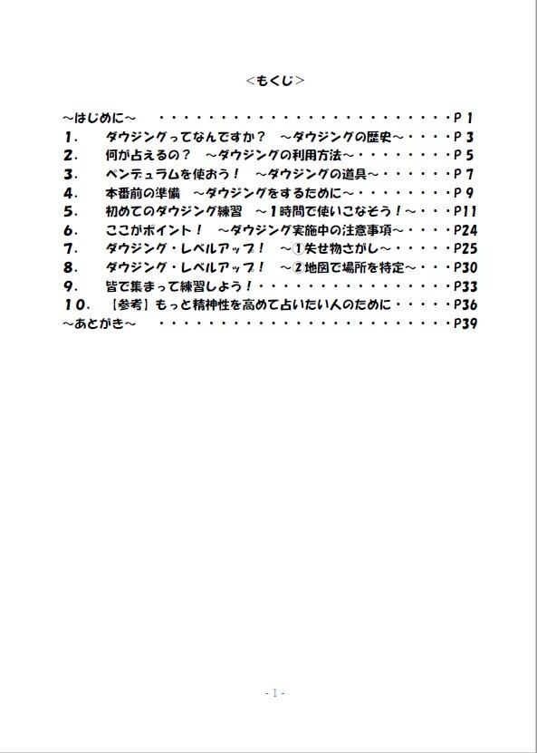 となっており、基本的に(1)と(2)を読んで実践していただければ、お手軽にダウジングを始めることができる内容となっています。