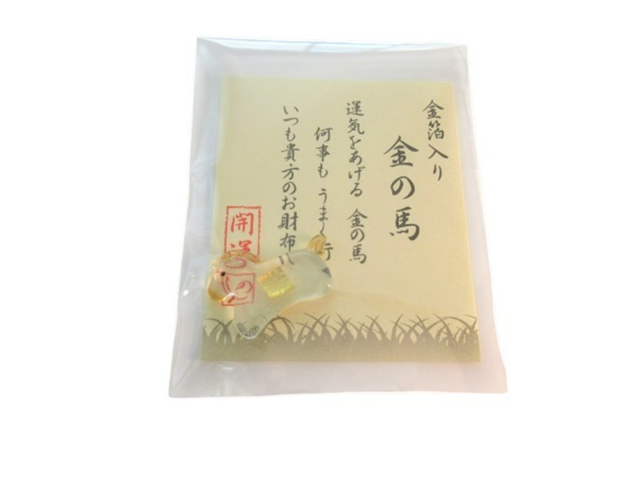 【縁起物】金箔入りガラスお守り『金の馬』~勝負運・出世運向上~