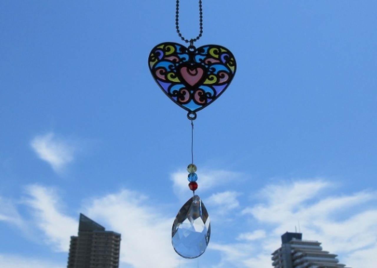 【浄化用品】ステンドグラス調サンキャッチャー(ハート型)