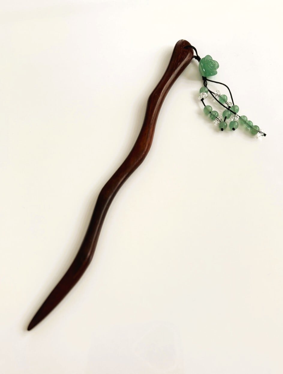 当然ながらこの手相スティックにも、天然石がバラの姿に加工されてついています。
