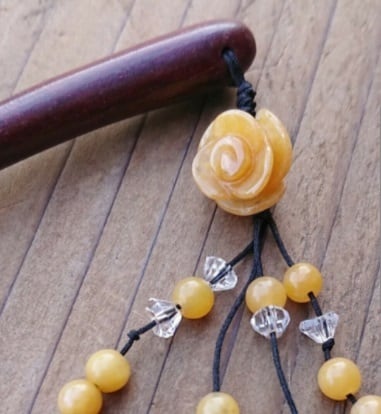 この手相スティックで使われている天然石はイエロージェイド(黄ヒスイ)です。