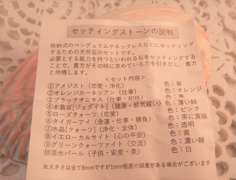 また、ペンデュラムにセッティングするための天然石もセットでお付けしています。