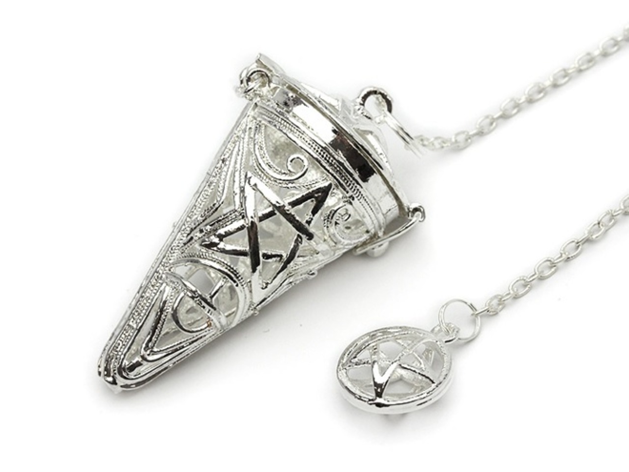 ■【ダウジング】金属ペンデュラム(五芒星・かご型)パワーストーンセット付き