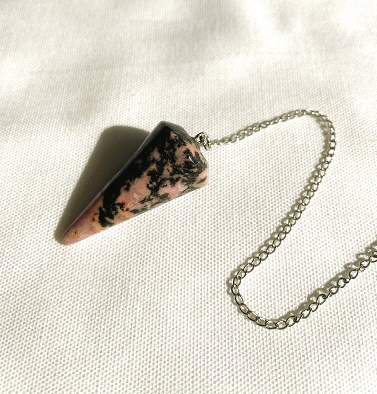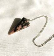 今回皆様にご提供する『ロードナイト』はペンデュラムとしては珍しい天然石で、通常はブレスレットやネックレスのペンダントヘッドなど、アキセサリーとして使われることで知られています。