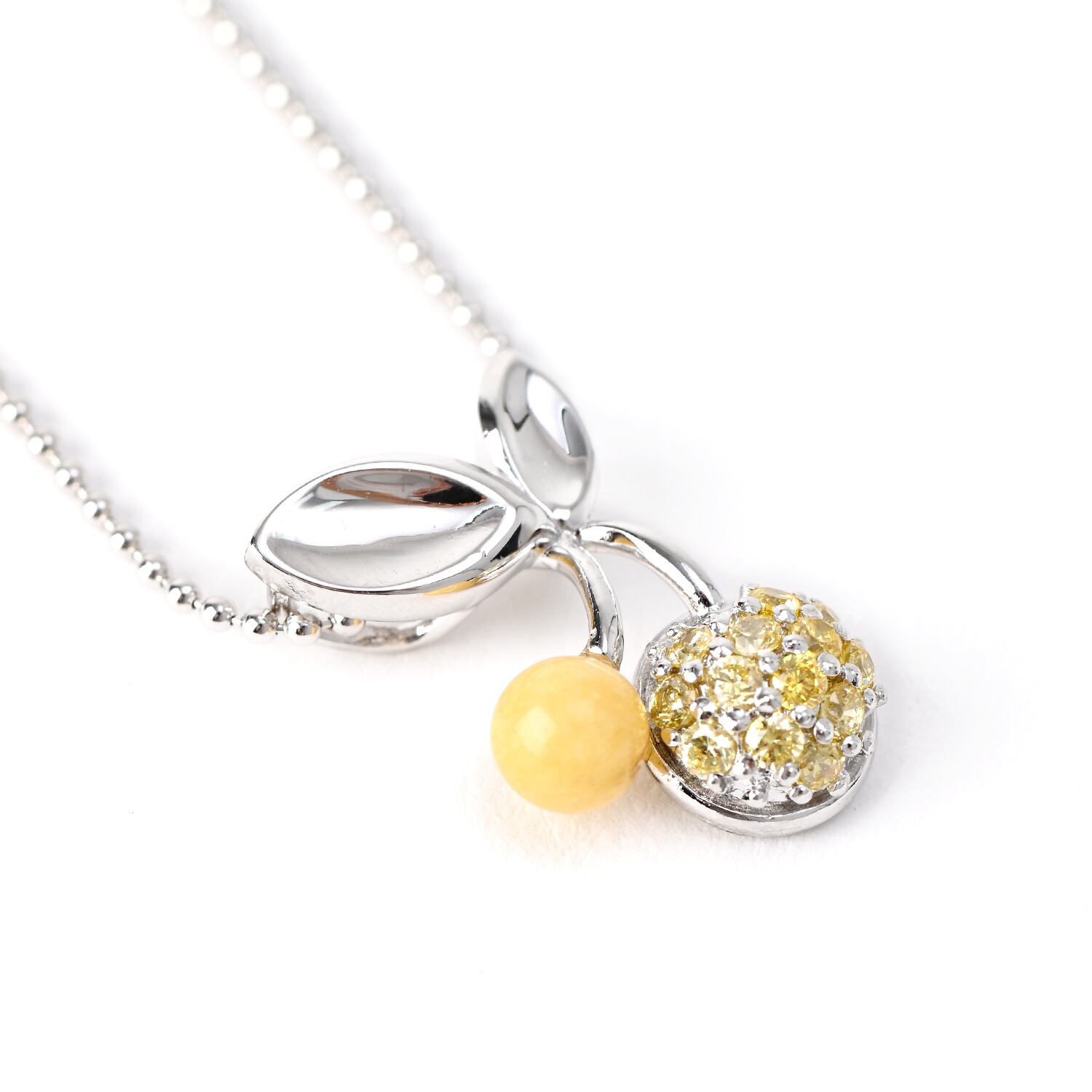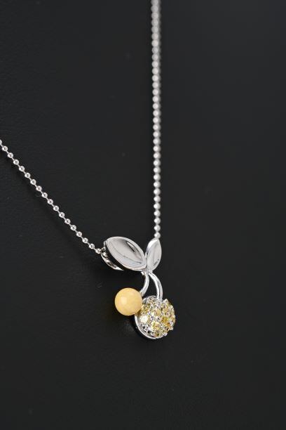 ■【ジュエリー】シルバーネックレス・チェリー(イエロージェイド・ヒスイ)