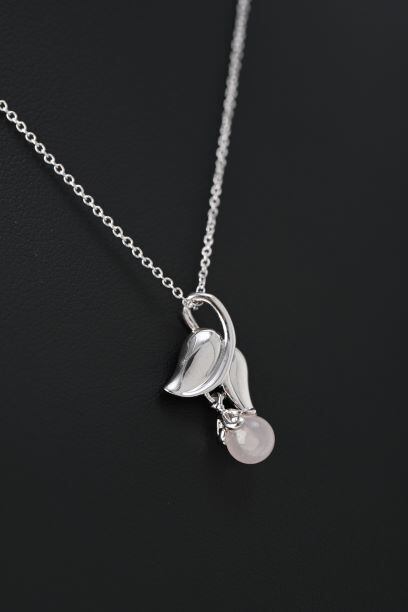 【ジュエリー】シルバーネックレス・フラワー(ローズクォーツ)