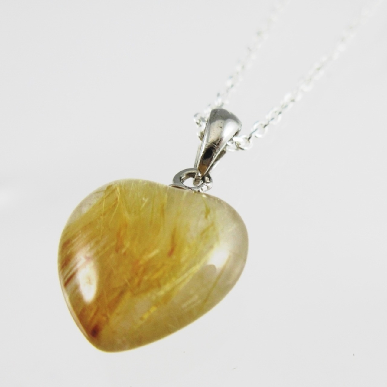 【ジュエリー】ルチルクォーツネックレス・ハート型(シルバー925)〜あらゆる幸運をもたらす石〜