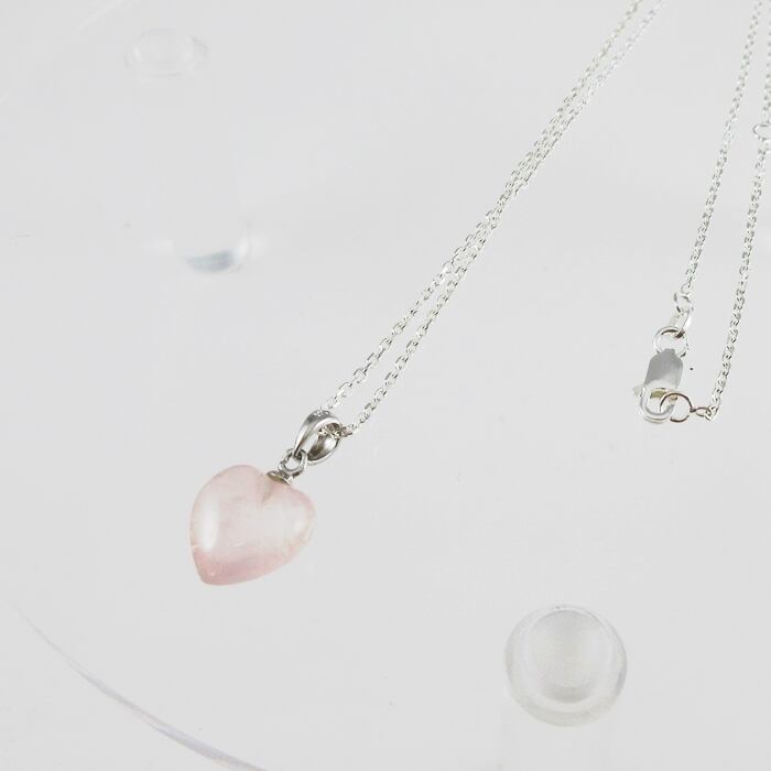 【ジュエリー】ローズクォーツネックレス・ハート型(シルバー925)〜恋愛成就の定番パワーストーン〜